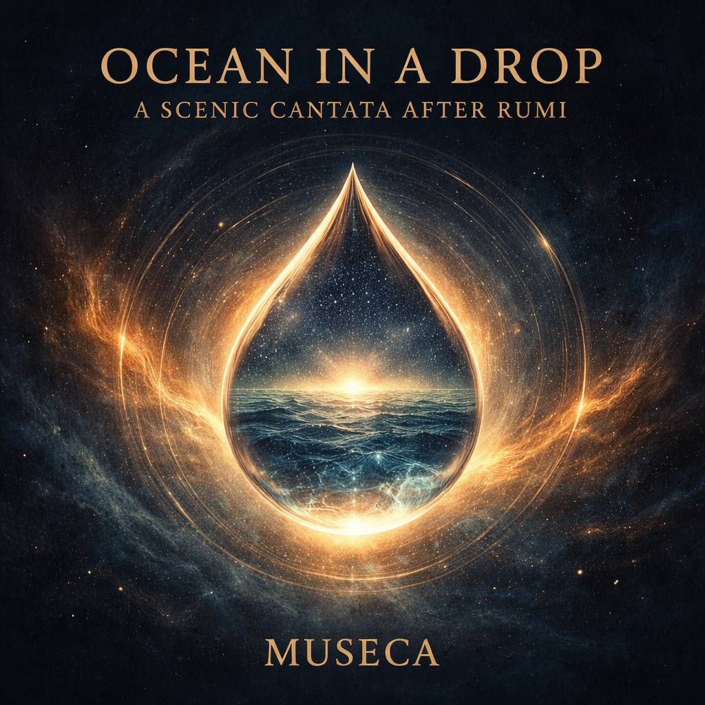 Ocean in a Drop: A Scenic Cantata after Rumi is an album-length ritual in music: a choral journey that moves from cosmic awe, to human invitation, to renewal, to ecstatic unity, into silence—then back to a final return. Its purpose is to create a spiritual experience that is non-religious: an audience doesn’t have to belong to any tradition to feel its message. The album is designed to be performed (or listened to) as a single arc—like entering a circle, being changed inside it, and leaving with a quieter, steadier light.