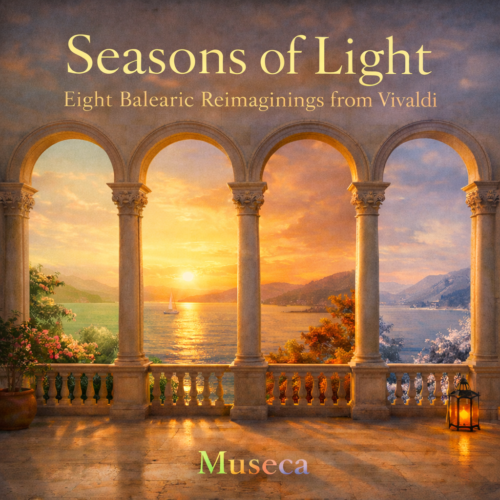 Seasons of Light continues the path opened by Harbors of Light, but turns from Bach’s architectural brilliance to Vivaldi’s vivid world of weather, motion, and season. Drawn from eight selected movements of The Four Seasons, this album preserves the melodic profile and emotional immediacy of Vivaldi’s music while recasting it in a new environment of Mediterranean air, Balearic pulse, warm dusk color, and spacious modern production. The goal was not to disguise the originals, but to let them remain fully recognizable while allowing them to live in another climate.