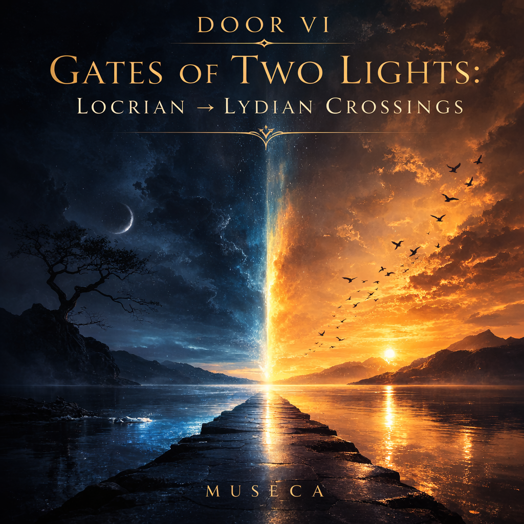 Taken together, the seven doors form a single architectural work: a passage through instability itself. What begins as darkness becomes inquiry, and what first appears unresolved gradually reveals its own form of balance. The listener is invited not to escape Locrian’s uncertainty, but to inhabit it—discovering that suspension, when explored deeply enough, can become its own kind of structure.