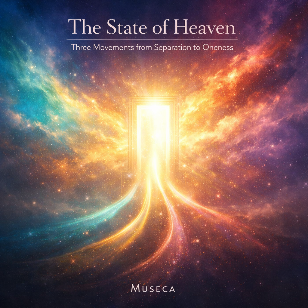 The State of Heaven — Three Movements from Separation to Oneness is built on a simple, radical premise shared by both Neale Donald Walsch and Abraham-Hicks: heaven is not primarily a destination in space, but a condition of consciousness—a lived inner state. In this view, what changes our reality is not where we go, but what we become while we are here: the shift from fear to love, from resistance to allowing, from the story of separation to the experience of union.