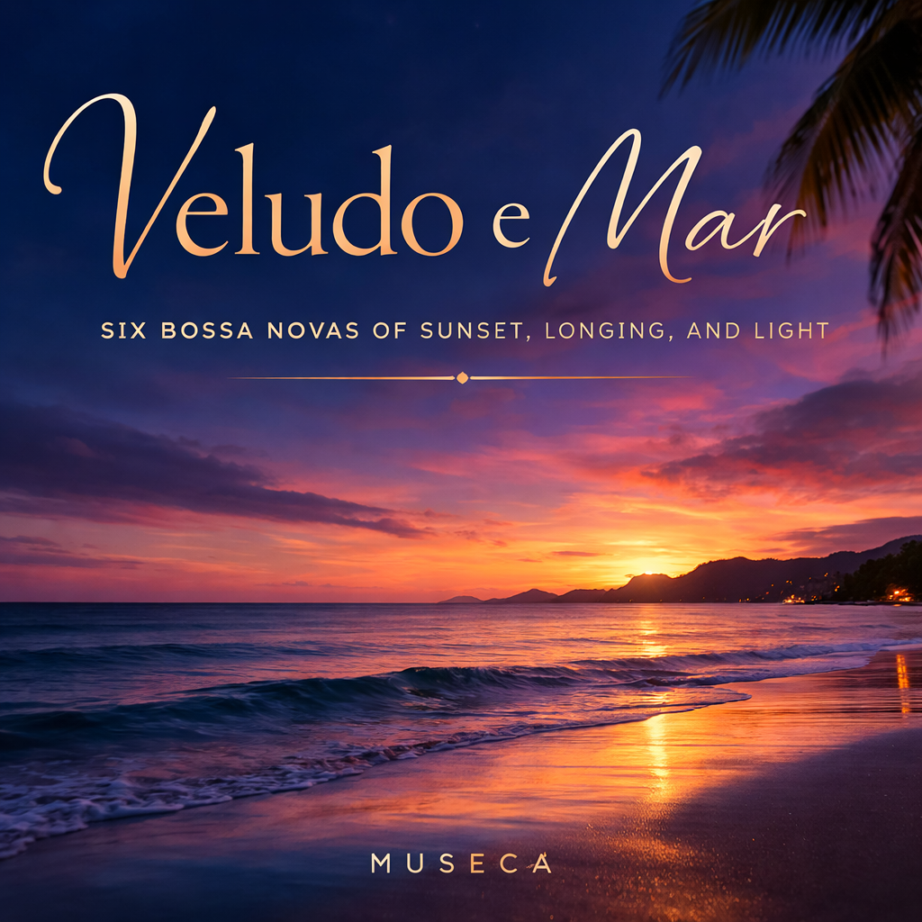 Veludo e Mar lives in that same atmosphere. These six songs explore the emotional landscape that bossa nova has always inhabited: the meeting of sea and sky, the quiet beauty of twilight, the subtle ache of memory, and the calm warmth of a new morning. The album moves through a natural arc of time and feeling—from the velvet glow of sunset, through moonlit streets and drifting mist, and finally into the soft renewal of dawn.